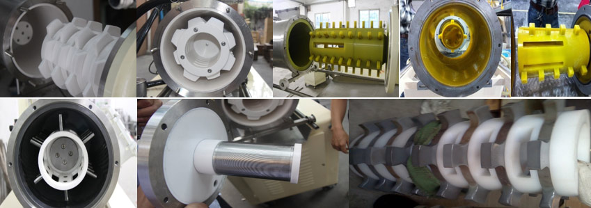 出料面積大,是盤式和渦輪式機器的2-4倍,物料通過性好,不易堵塞機器,在生產(chǎn)有膨脹性物料時優(yōu)點突出。冷卻換熱效果好。桶體,轉(zhuǎn)子,出料器三位冷卻,冷卻面積是盤式及渦輪式設(shè)備的1.3-1.5倍,有效控制物料的升溫問題。